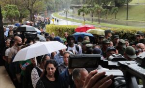 Mientras tanto, las avenidas aledañas al Minfar continúan llenándose de pueblo. Desde temprano, hombres y mujeres esperan el momento de honrar a los 32 cubanos caídos.